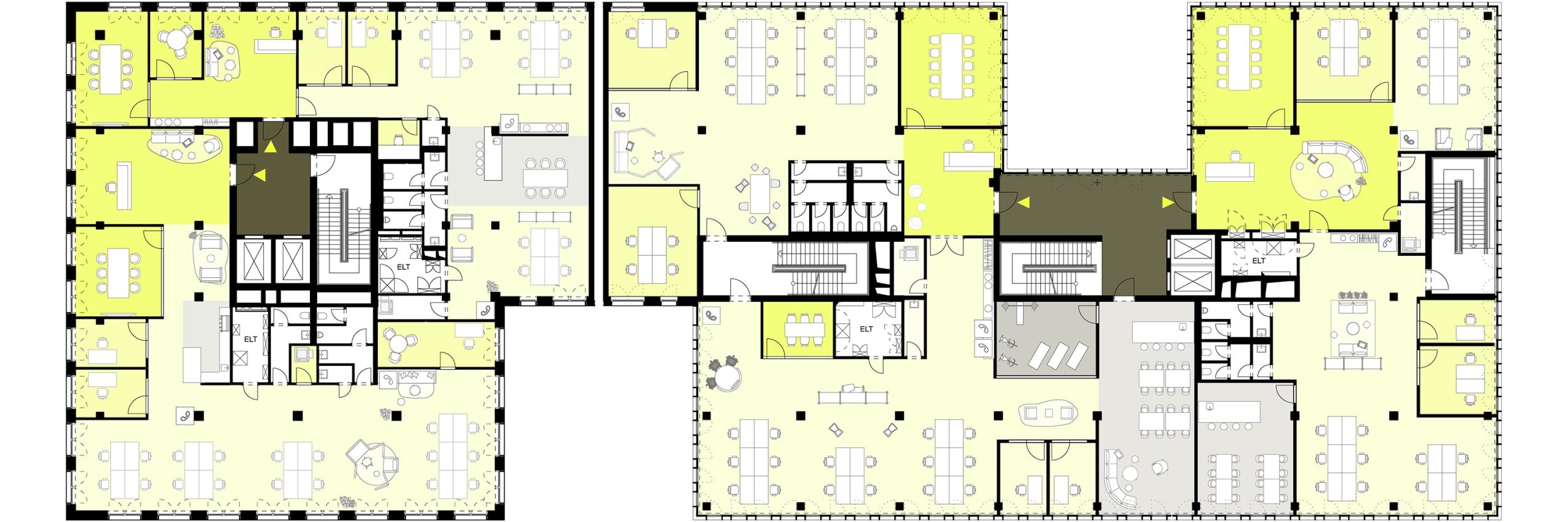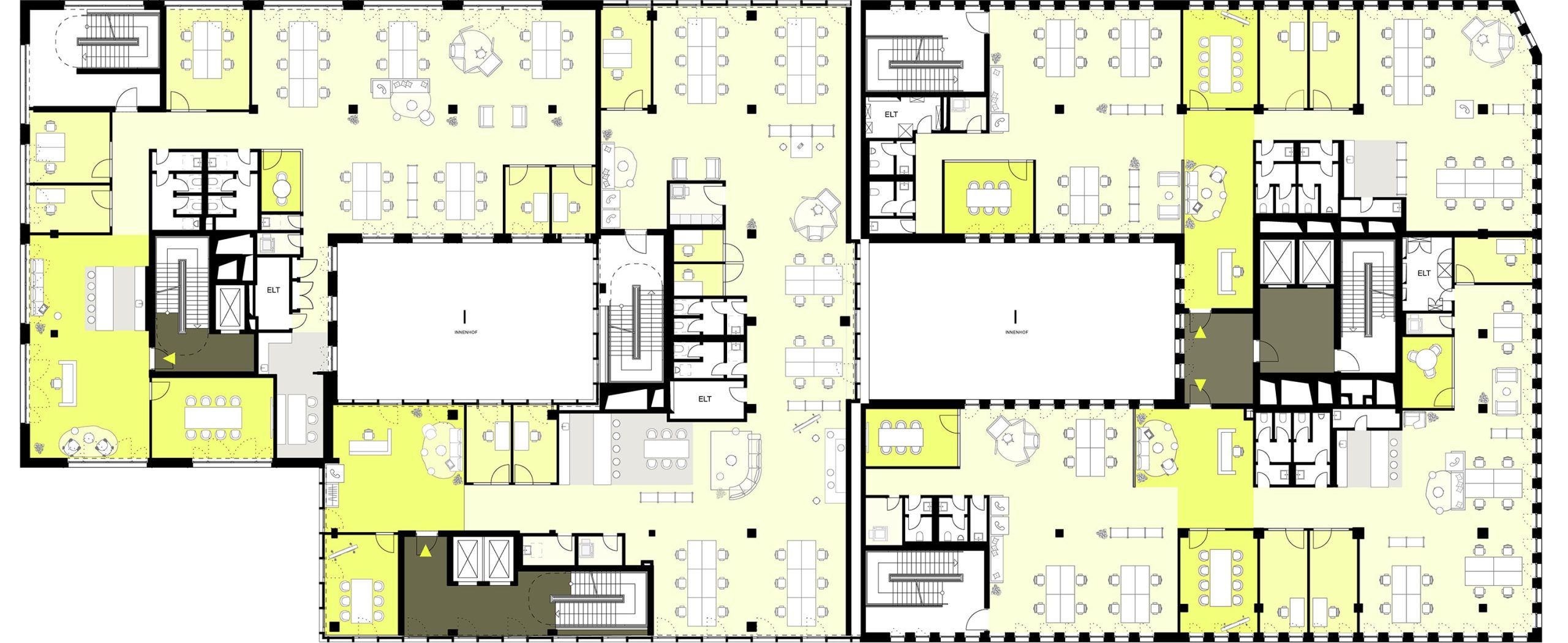 Teilbar in zwei autark funktionierende Gebäudekörper mit ca. 6.800 m² (ZWEI.1) bzw. 7.350 m² (ZWEI.2)