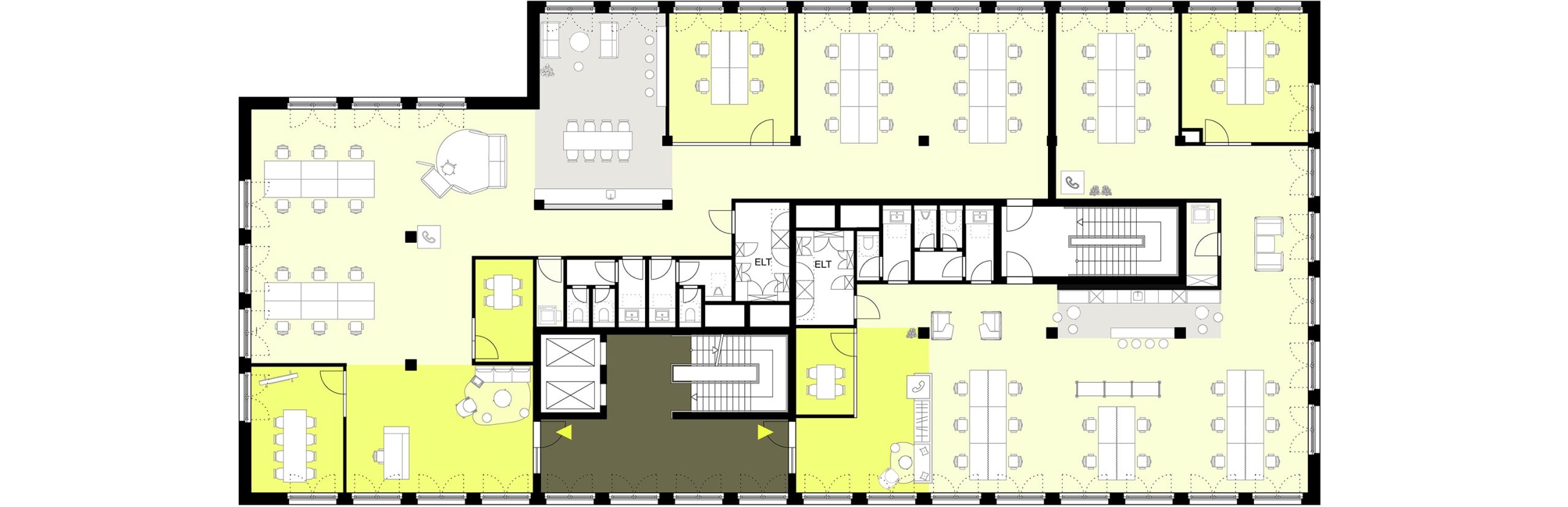 • lichte Raum­höhe in den EGs min. 4,5 m, in den OGs min. 3,4 m