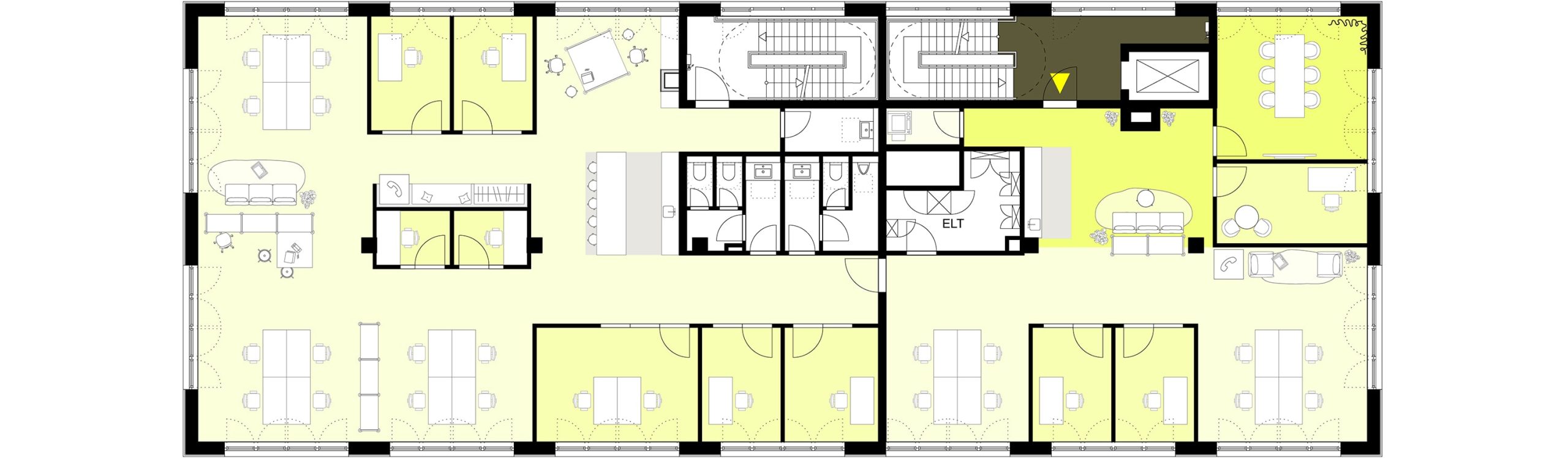 • Moderne Beleuchtung über Stehlampen, Präsenzmeldegeführt und tageslichtabhängige Steuerung